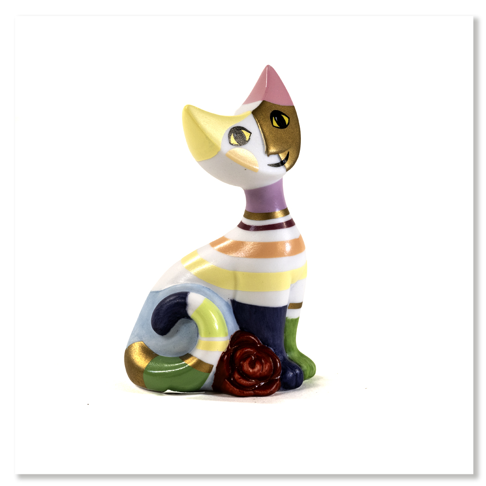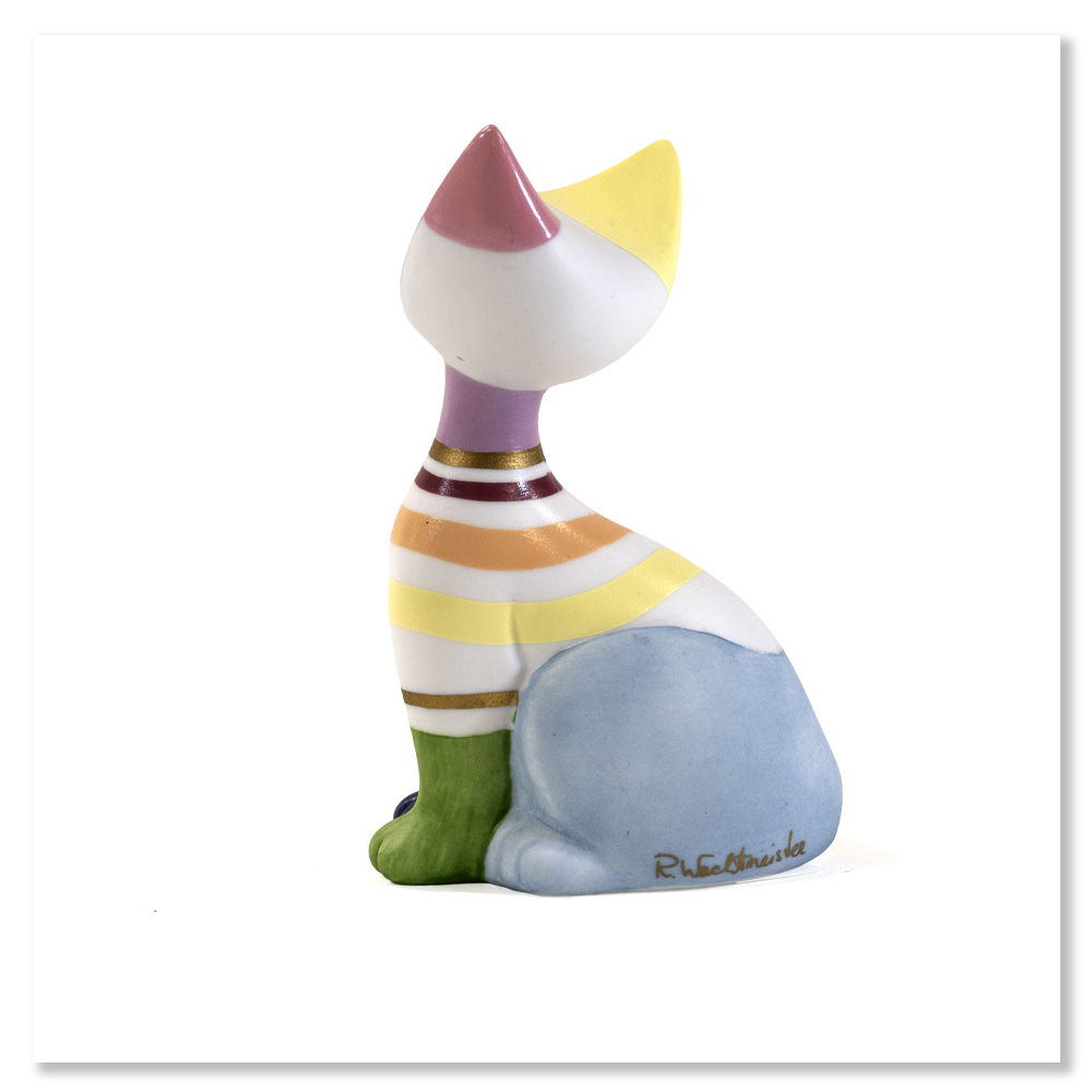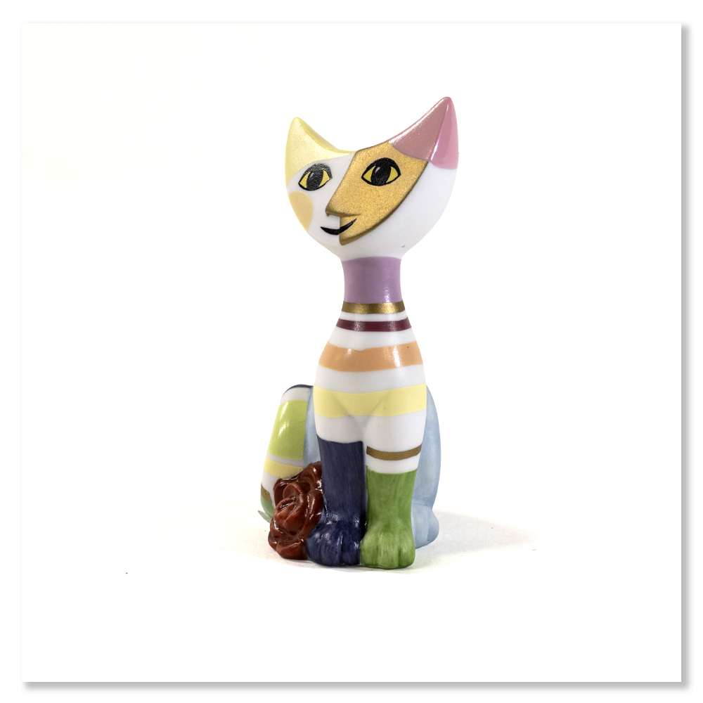 The Carla Cat figurine from Goebel is an example of whimsical charm and artistic detail. Crafted from hand-painted porcelain, Carla sits gracefully with a sweet and curious expression. Her unique design and vibrant colors make her a delightful addition to any space. It really stands out with the bright colours.