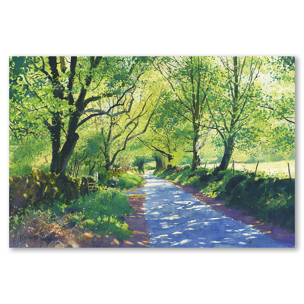 Explore the serene charm of “Cool Avenue,” a fine art limited edition Giclée print by Richard Thorn. This captivating piece draws you into a shaded avenue, where light dances through leafy canopies, creating an aura of calm and reflection.