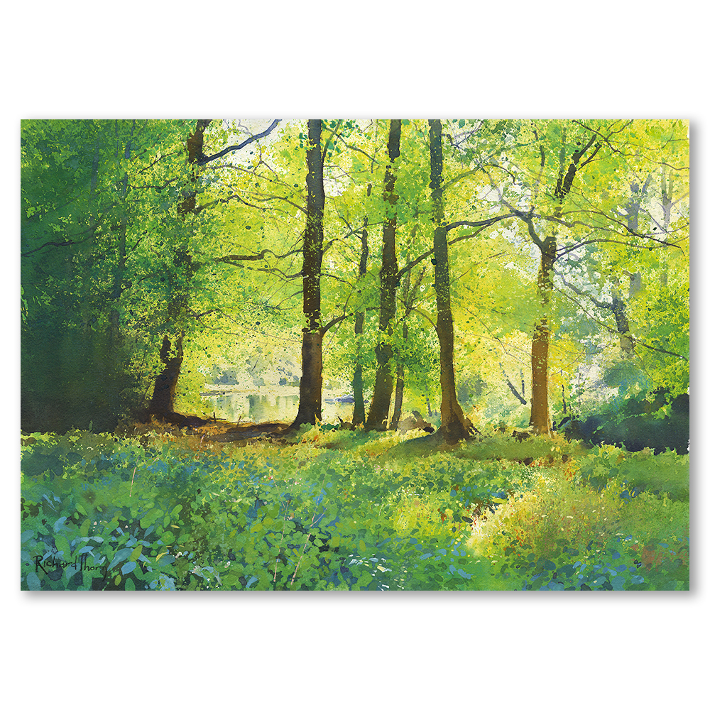 Step into the enchanting world of “Cool Glade,” a fine art limited edition Giclée print by Richard Thorn. This breathtaking piece immerses viewers in a lush woodland setting, where dappled sunlight filters through the verdant canopy, casting ethereal patterns on the forest floor.