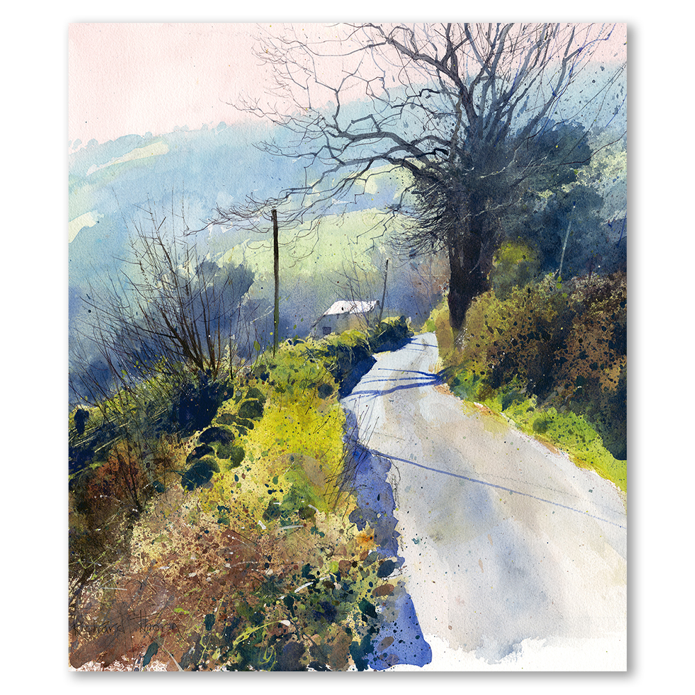 “Down in Misty Vale,” a fine art limited edition Giclée print by Richard Thorn, envelops viewers in the serene beauty of a mist-laden landscape. This enchanting piece captures the tranquil essence of the vale, where mist softly veils the rolling hills.