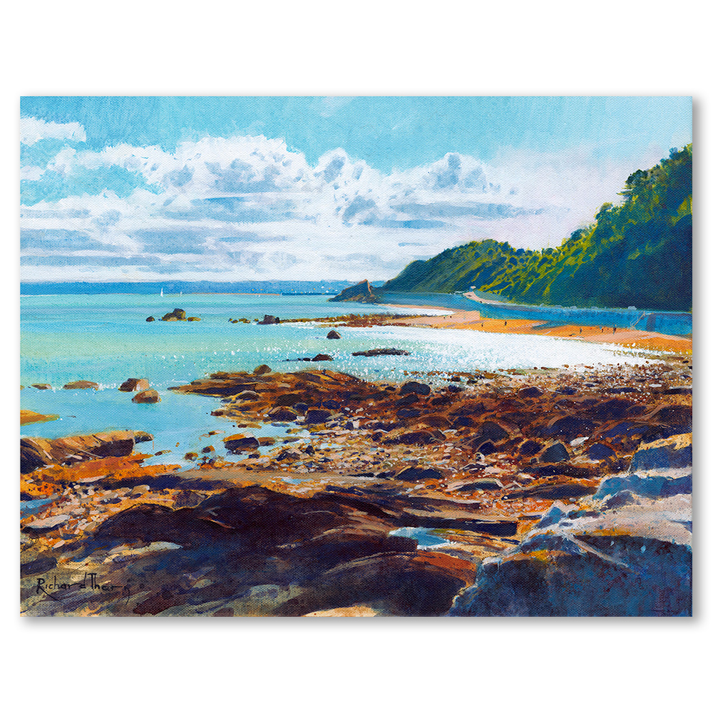 “Evening Tranquillity,” a limited edition Giclée print by Richard Thorn, encapsulates the serene essence of a peaceful coastline. As the sun sets, gentle waves lap against the shore, creating a symphony of soothing sounds. Warm hues and soft shadows meld seamlessly, painting a picture of ultimate relaxation. Moreover, Thorn’s mastery in detail invites viewers to immerse themselves fully in the scene.