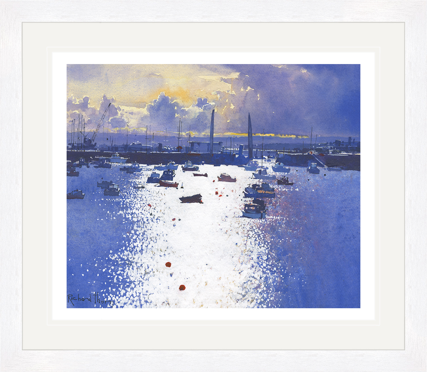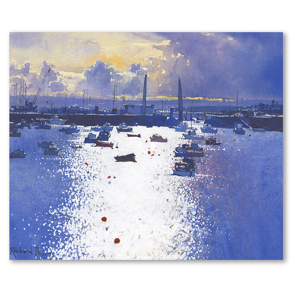In conclusion, “Harbour Evening Light” offers a glimpse into the serene allure of the harbour at dusk. Thorn’s expert use of colour and light ensures this print remains a cherished piece for any art enthusiast.