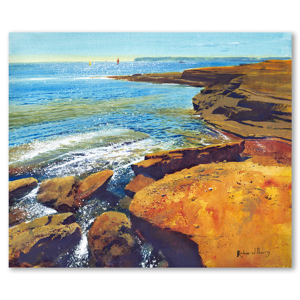 In conclusion, “Headland Morning” invites viewers to experience the tranquil beauty of dawn by the sea. Thorn’s expert composition and vibrant colours make it a cherished addition to any art collection.