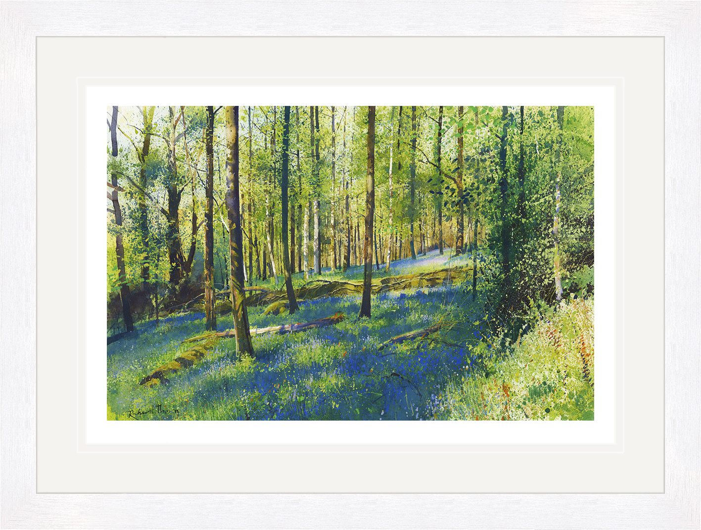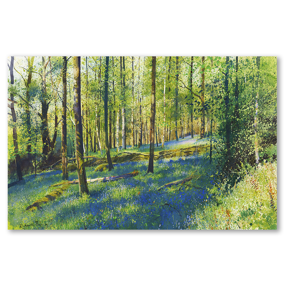 Richard Thorn’s “In The Blue Wood” invites you into a magical woodland where every leaf and shadow plays a part in a vibrant symphony. With bluebells carpeting the forest floor, the scene conveys springtime’s rejuvenating essence. This Giclée print captures the rich interplay of light and shadow, drawing you deeper into its enchanting embrace.
