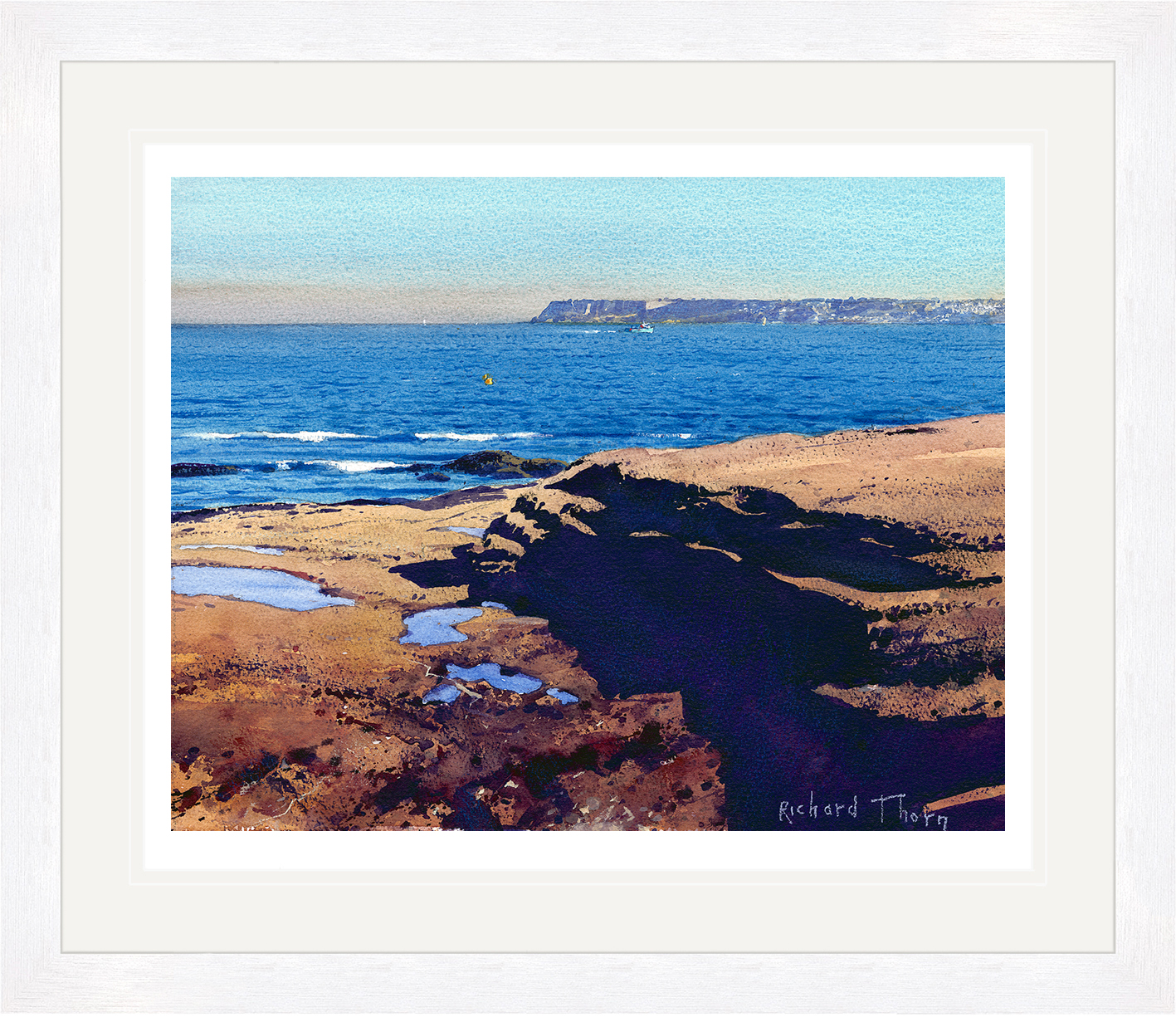 “Late Afternoon” by Richard Thorn beautifully depicts the tranquillity of a sun-drenched coastal scene. This limited edition Giclée print captures the essence of the late afternoon glow, where land meets sea. Thorn’s skilful use of light creates an atmosphere rich in warmth and serenity.