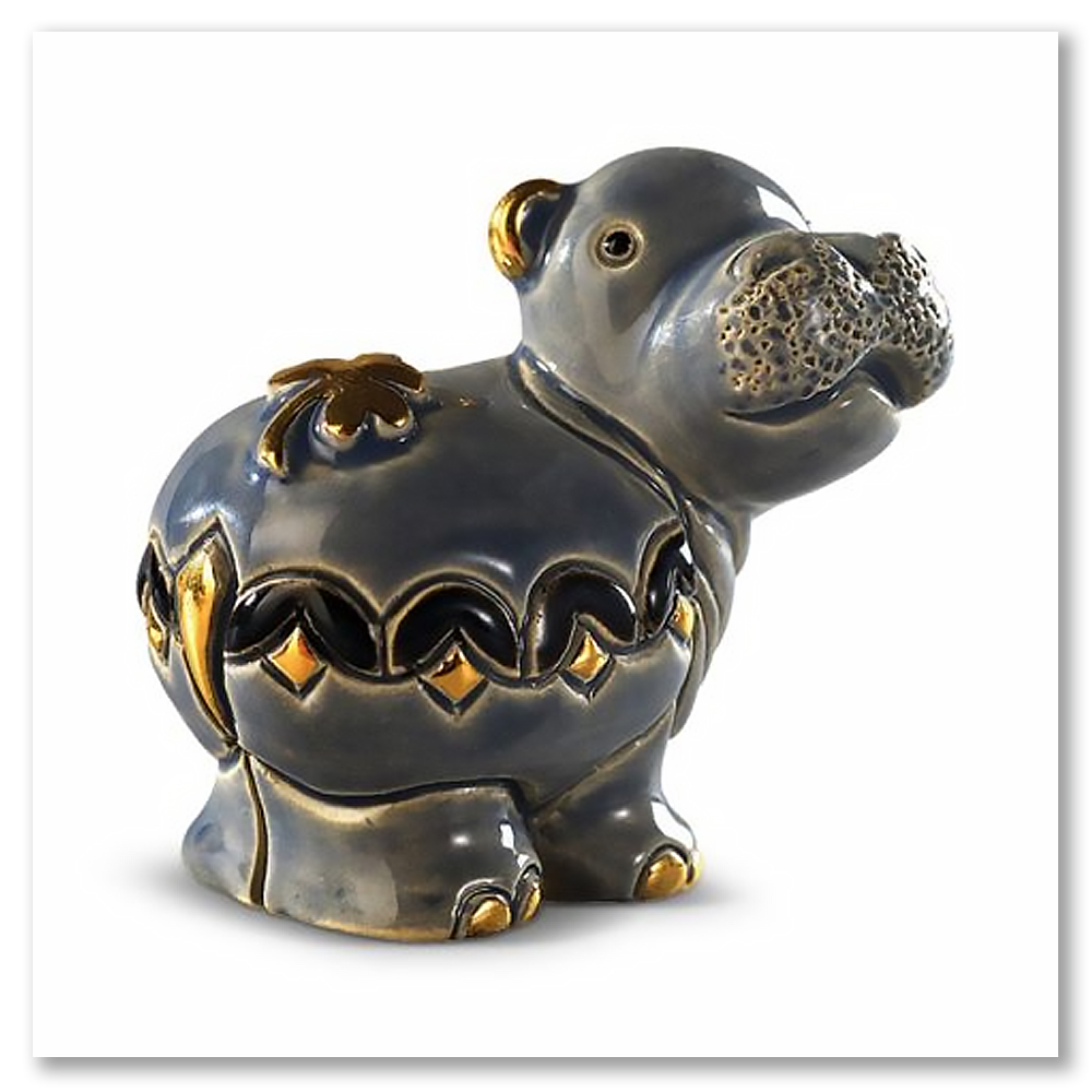 This adorable mini hippo figurine, a creation of De Rosa from Uruguay, brings a touch of playful elegance to any space. Its sophisticated slate blue colour is beautifully accented with gold detailing and a unique patterned design. Furthermore, it boasts exceptional craftsmanship.