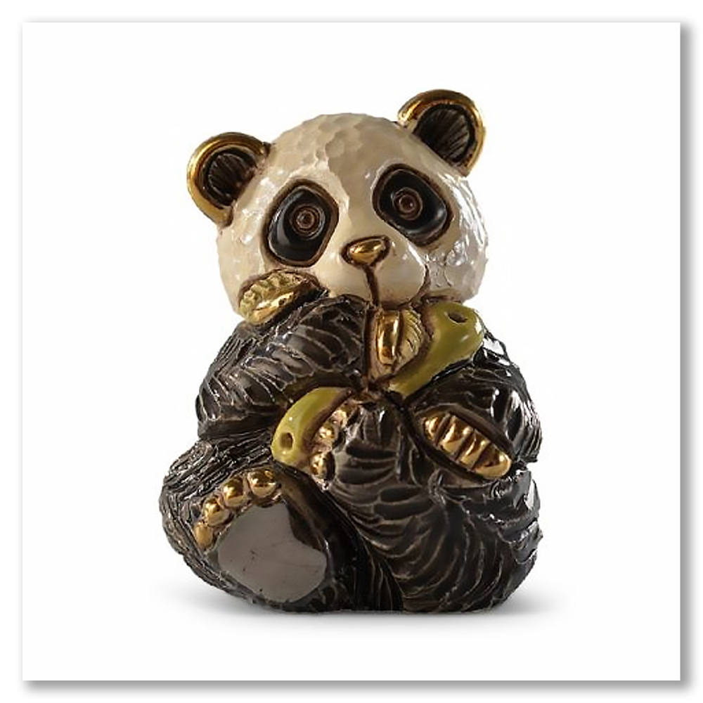 This adorable mini panda figurine, handcrafted by De Rosa in Uruguay, captures the gentle charm of this beloved creature. Its rich dark brown fur contrasts beautifully with its creamy white face. Moreover, intricate detailing and 24-karat gold accents elevate its appeal.