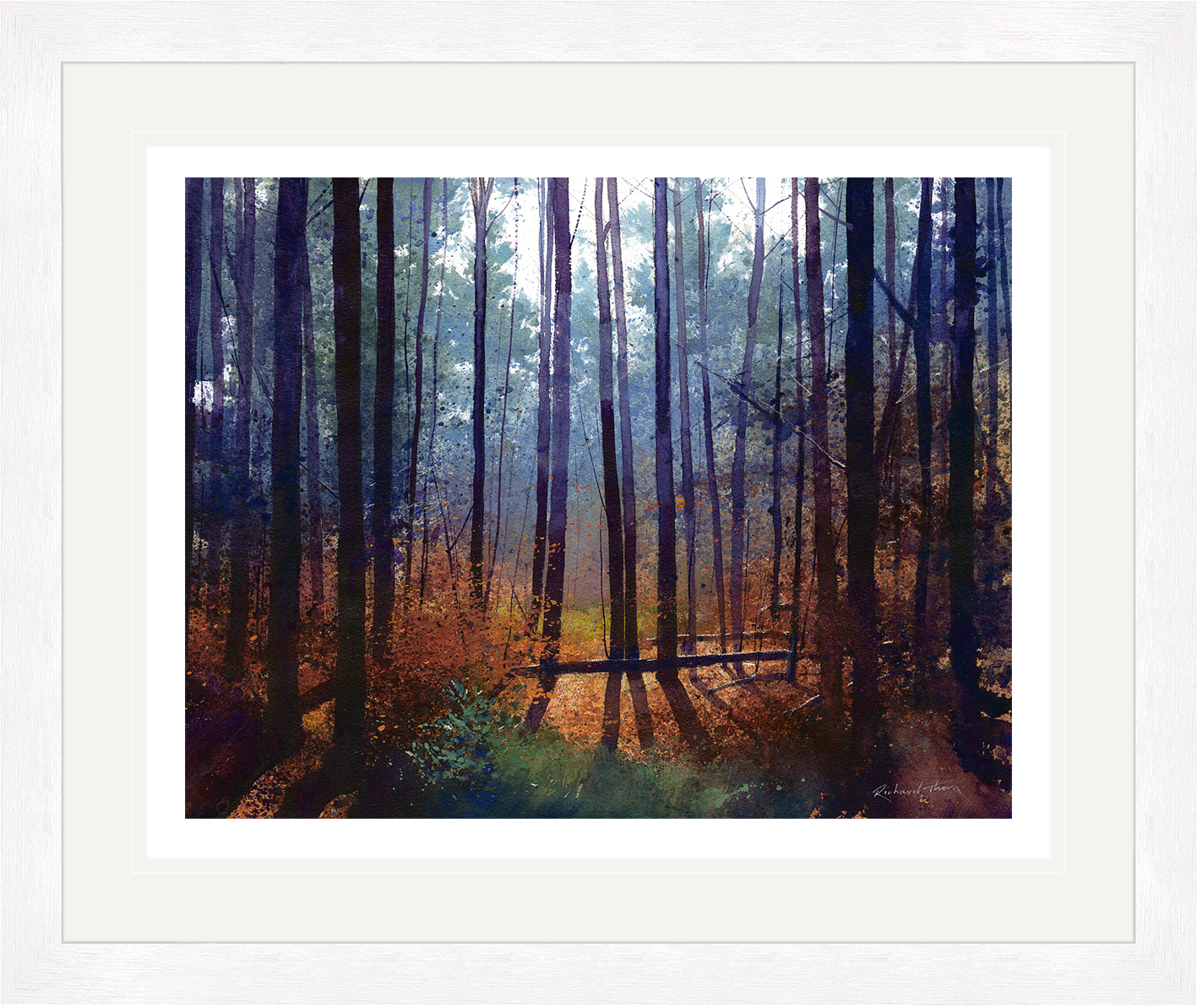 “Prelude to an Afternoon of a Faun” by Richard Thorn evokes a sense of wonder and tranquillity. This fine art Giclée print captures a woodland bathed in sunlight, where shadows play amongst the trees. Thorn’s skilful use of light and texture creates a dreamlike atmosphere, inviting viewers into a magical forest. Additionally, the interplay of rich browns and soft greens enhances the scene’s ethereal beauty.