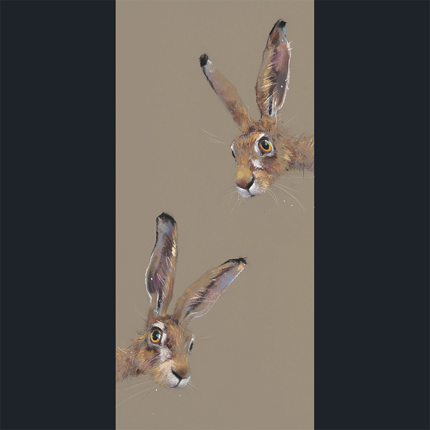 Traditional subject matter such as hares, foxes and livestock are at the heart of her paintings, which she creates mainly in pastel. With a playful use of line and colour she produces delightful, contemporary artworks full of character and charm.