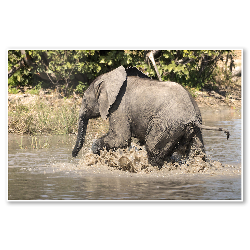 “Splashing In The Cool Waters” by Fiona Haddon captures a lively moment of an elephant relishing the refreshing water. This limited edition Giclee print vividly depicts the joy and innocence of wildlife enjoying a moment of respite. The dynamic splashes of water, highlighted by sunlight, create a sense of movement and energy. Haddon’s masterful use of colour and texture makes the scene almost come alive, inviting viewers to feel the coolness of the water and the exuberance of the moment.