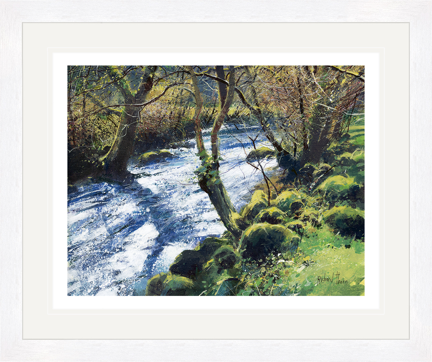 “Spring River” by Richard Thorn showcases a mesmerising blend of movement and stillness in this limited edition Giclée print. The river flows gracefully, reflecting light and shadow in a stunning dance. Thorn’s use of colour and texture invites viewers to immerse themselves fully in the scene.