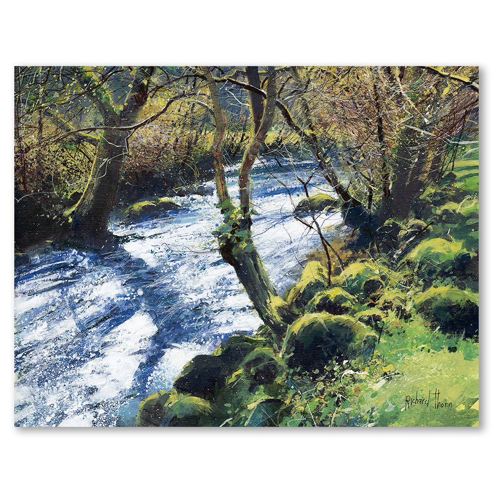Richard Thorn’s artistry captures the essence of spring’s renewal. Lush greenery and intricate details convey a sense of rejuvenation and peace. Transitioning from the gentle ripple of water to the vibrant foliage, each element harmonises beautifully, offering a serene escape from the everyday.