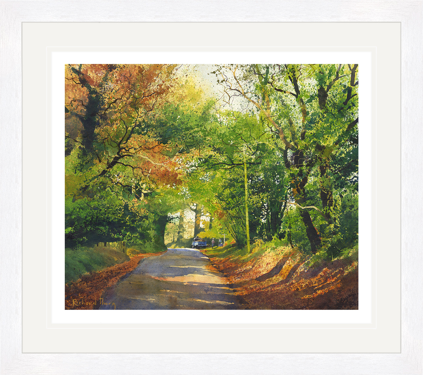 This limited edition print highlights rich textures and dynamic lighting, showcasing Thorn’s exceptional skill. Its elegant frame enhances the artwork’s depth, making it a perfect addition to any room. Furthermore, the interplay of light and shadow on the road adds a captivating dimension to the scene.